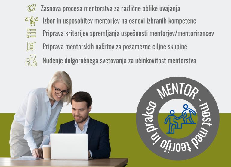- Izbor ustreznih orodij za učinkovito izvajanje in spremljanje ter evalvacijo mentorstva;